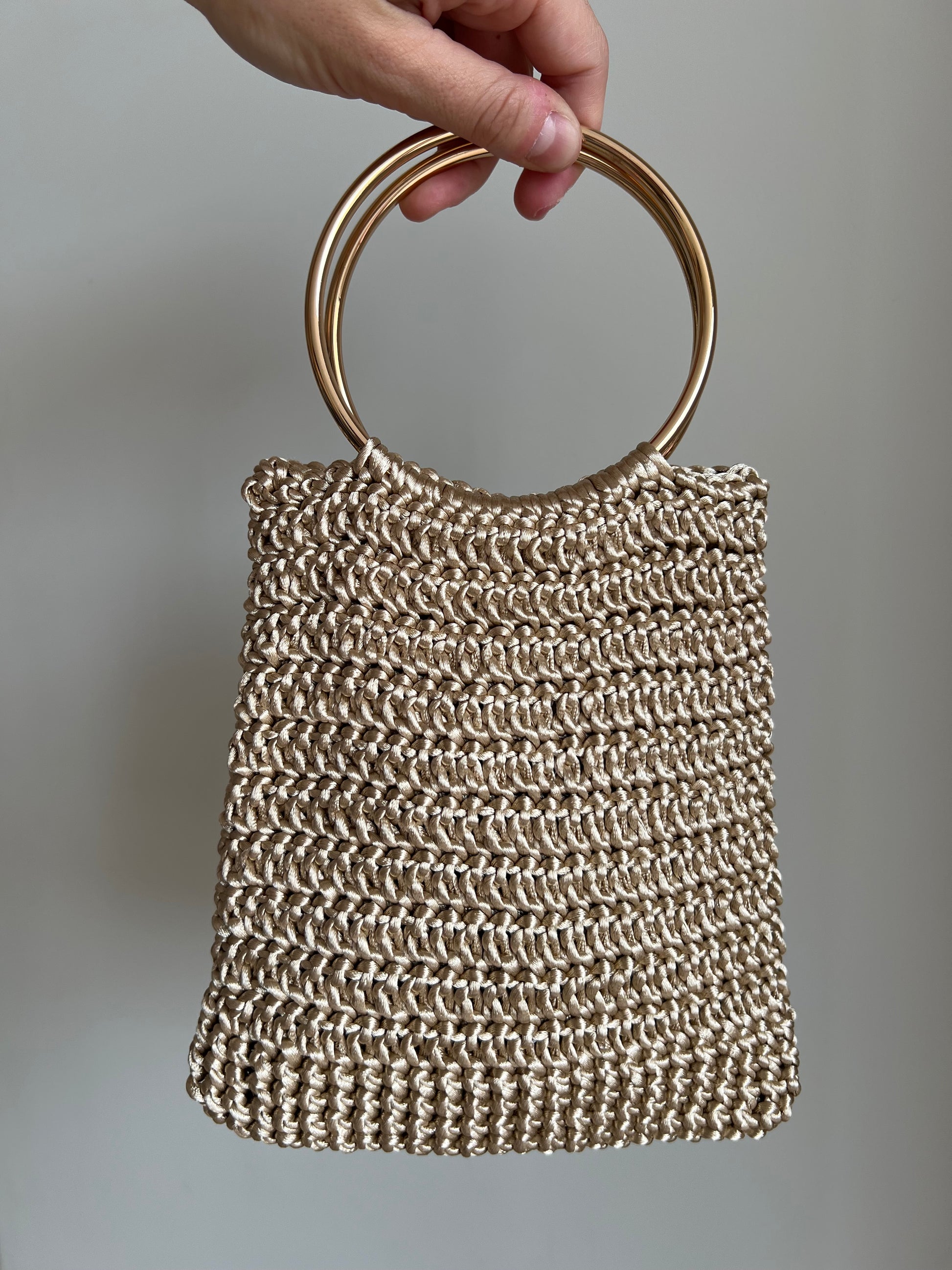 The Pilar bag, crafted from silk rope, is an exclusive design, handwoven with silk rope for a satin finish. It also features a gold-tone ring that adds a touch of elegance. A must-have for your collection of handcrafted bags.
