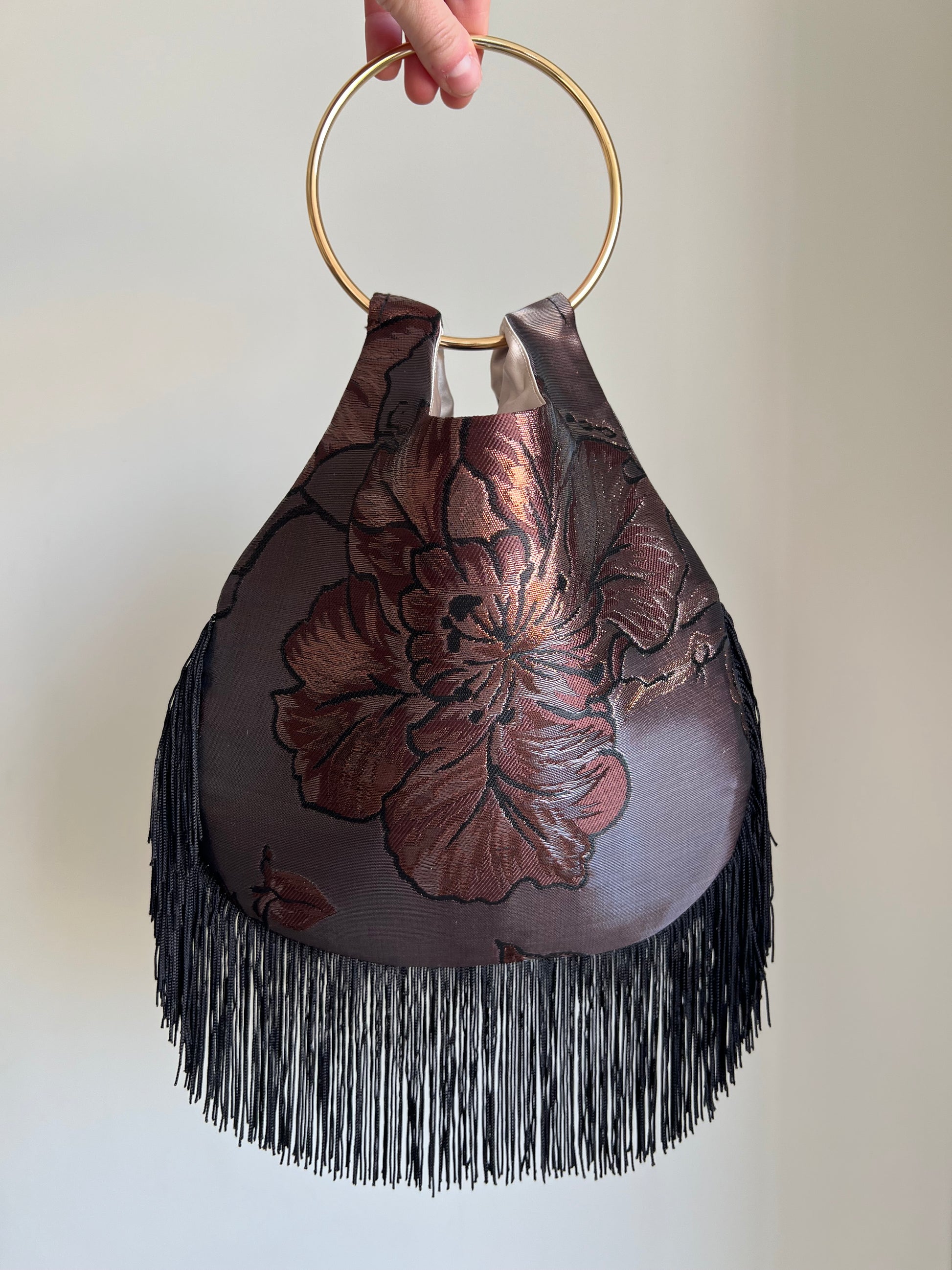 Lined with beige satin.